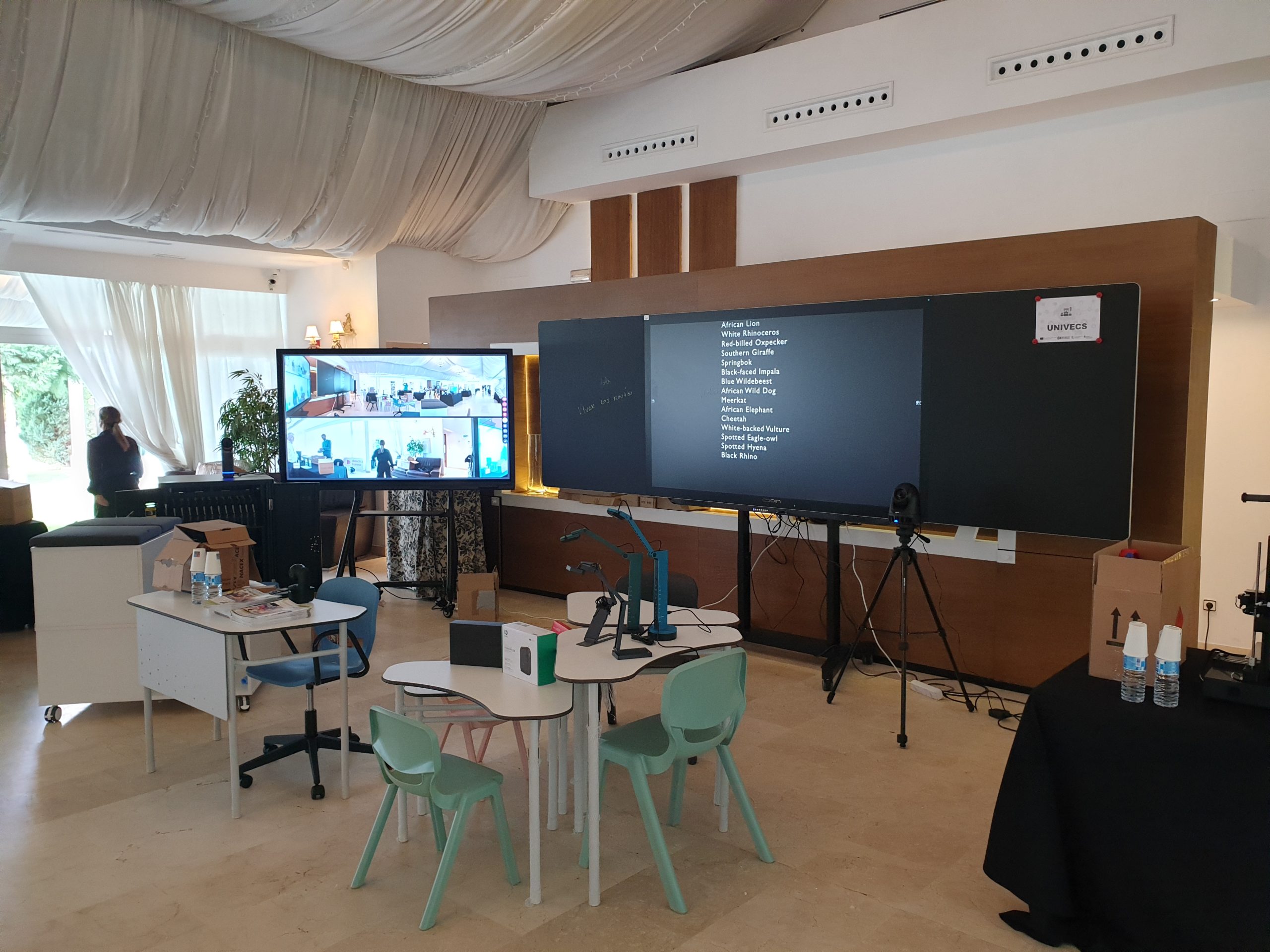 Con un gesto sutil, transforma la E-Blackboard en una pizarra tradicional de tiza de 4 metros. Los trazos digitales y tradicionales coexisten, y todo se borra sin esfuerzo, dejando espacio para nuevas inspiraciones.